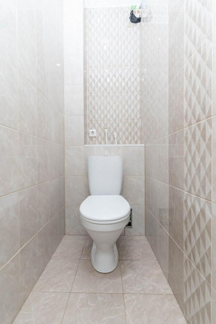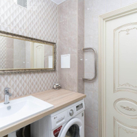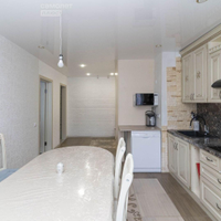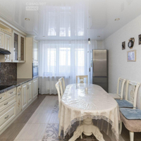 Квартира оснащена кухней с керамогранитом и теплым полом, натяжными потолками глянец и ламинатом 33 класса во всех комнатах. Стены оклеены качественными обоями, а встроенная мебель включает шкафы-купе от известных брендов. Санузел раздельный, отделан плиткой керама.