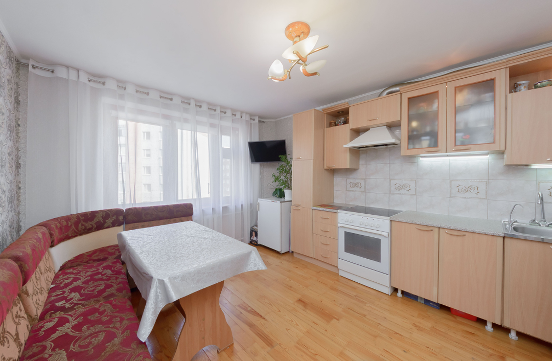 * При продаже остается кухонный гарнитур, шкафы-купе, а остальное обговаривается отдельно. Это идеальный вариант для семей с детьми, так как рядом расположены образовательные учреждения и различные магазины для комфортного проживания.