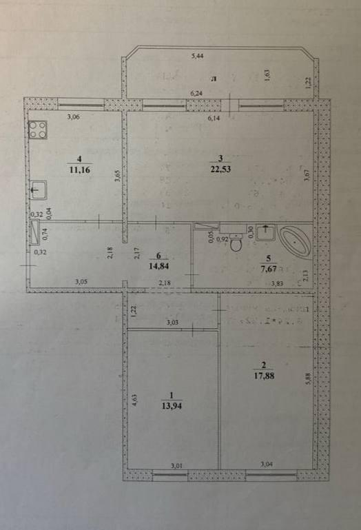 -санузел в кафеле, установлены счетчики,