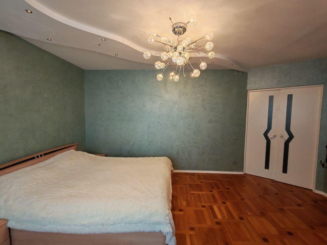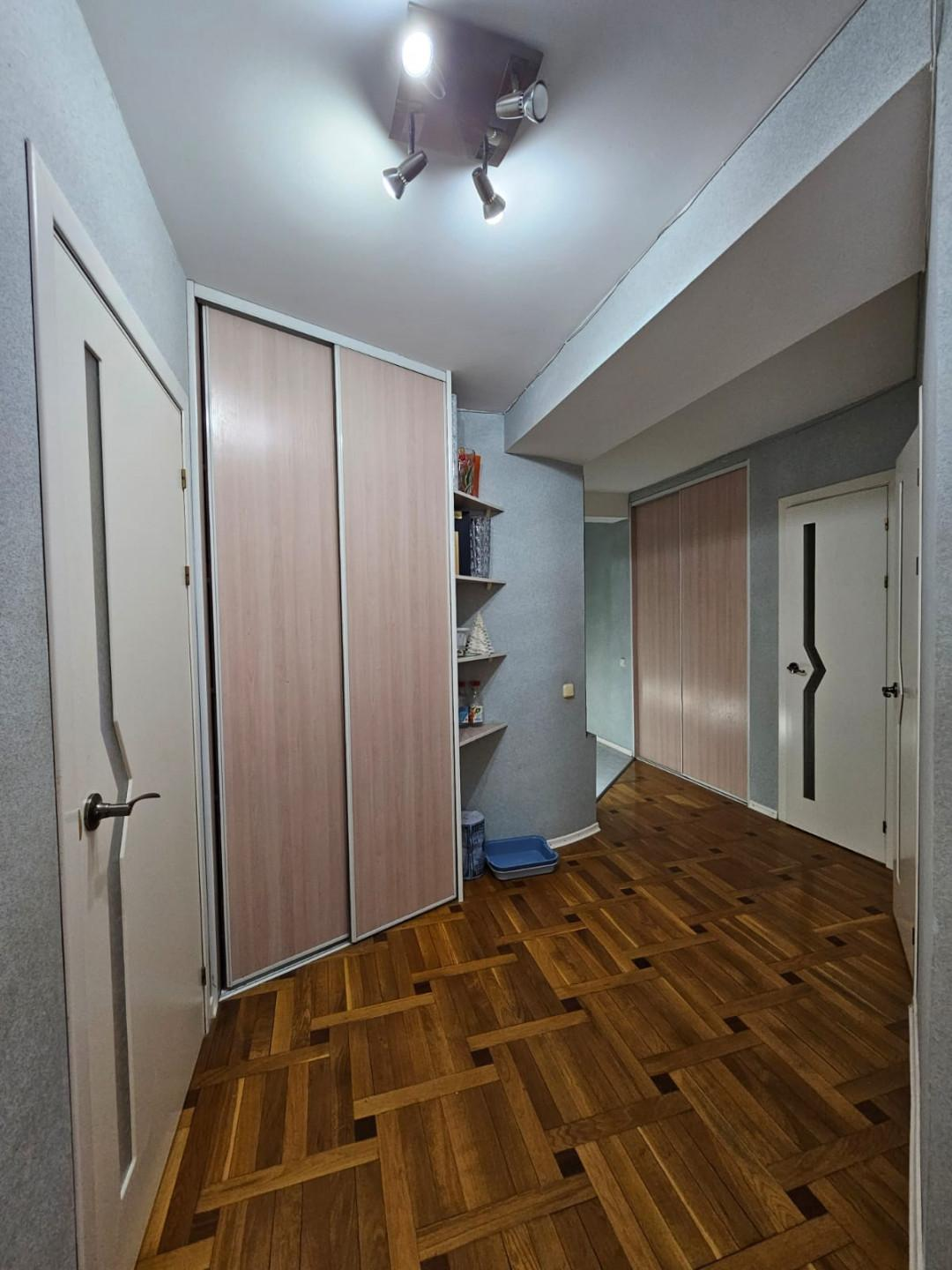Квартира находится на 8 этаже. Тамбур на две квартиры. Во всей квартире медная проводка. Хороший ремонт. На полу паркет. Межкомнатные двери деревянные. Раздельный санузел. Просторная ванная комната 6кв.м ! Имеется гардеробная!