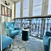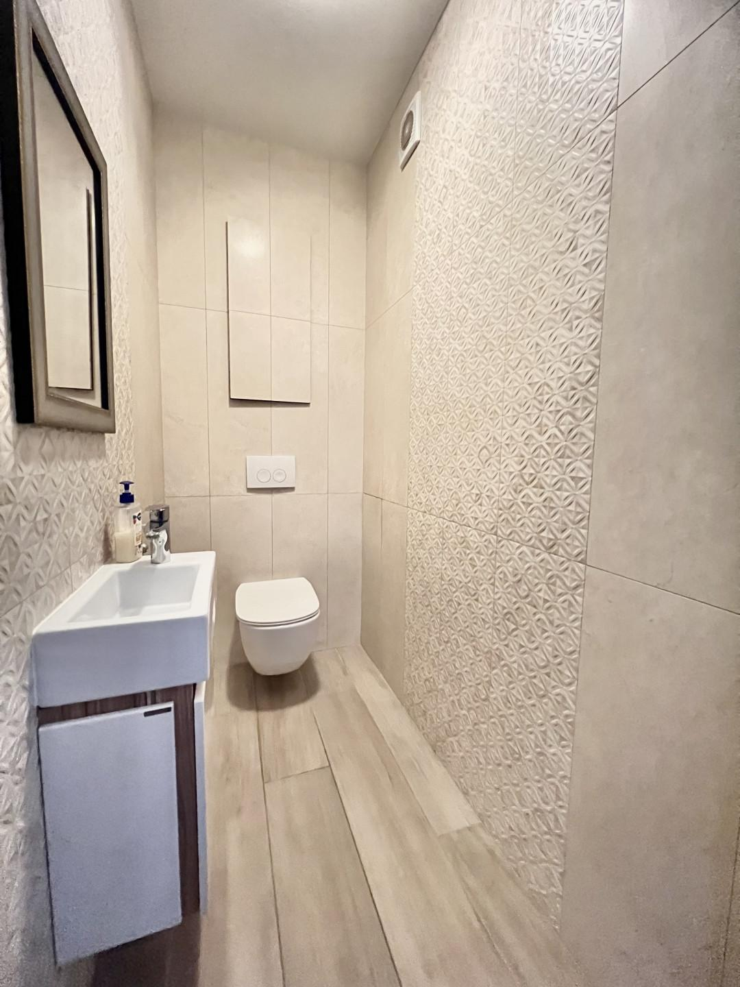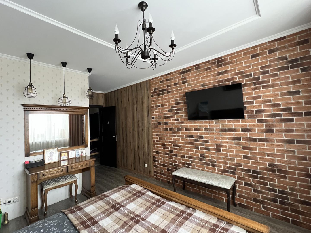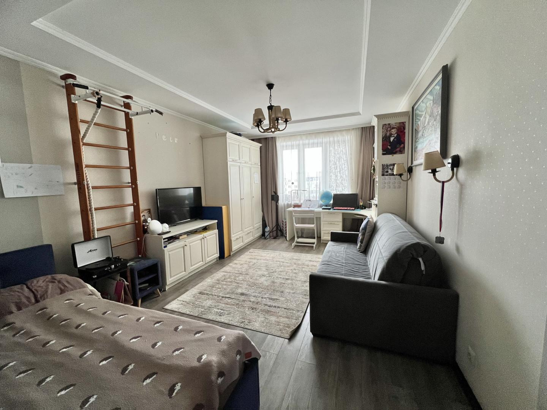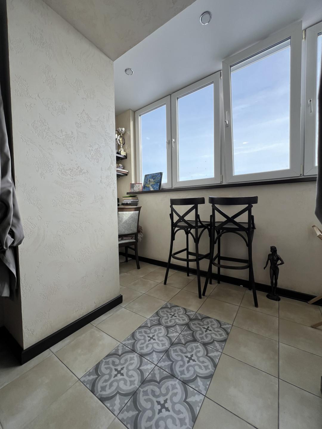 Переезд не планировался, поэтому к ремонту подошли ответственно. Произведен качественный дизайнерский ремонт. Потолки подвесные с основным и дополнительным освещением, стены в гостинной, прихожей и на балконах покрыты декоративной штукатуркой, на полу уложен керамогранит и ламинат 33 класса, качественная сантехника. Установлены кондиционеры.