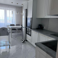 Полностью оборудованная встроенная кухня с техникой, а также стол и стулья – всё готово для воплощения ваших кулинарных шедевров и семейных ужинов и остаются новому хозяину .