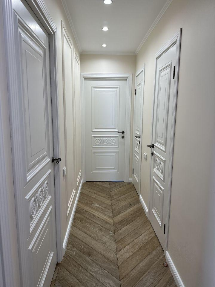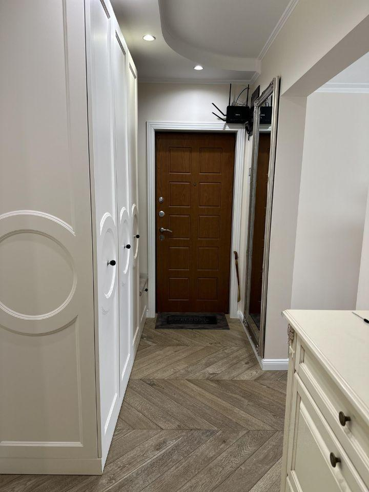 По всей площади квартиры уложена паркетная доска (французская ёлка).