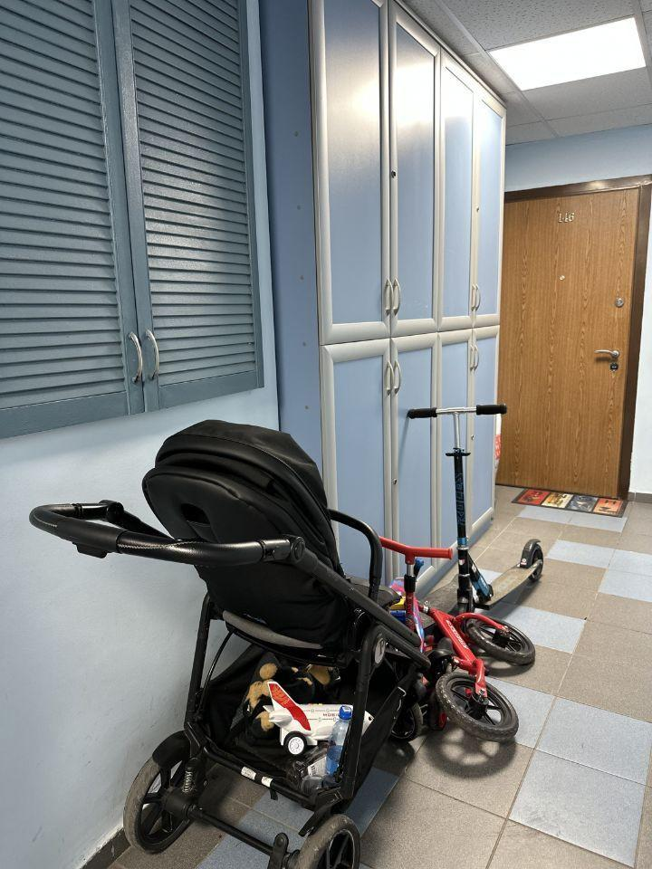 На лестничной площадке всего три квартиры и много пространства для хранения колясок, велосипедов, плюс установлено 4 шкафа для хранения редко используемых вещей и инструментов. Прекрасные соседи. Консьерж.