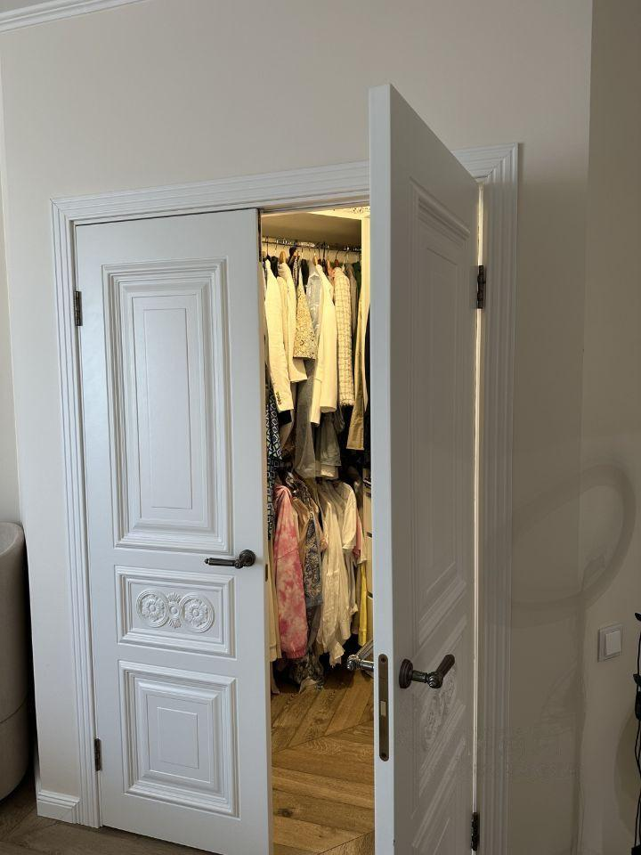 В одной из спален создана большая встроенная гардеробная.