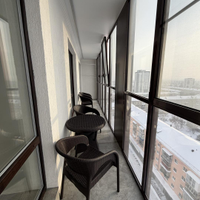 Общая площадь квартиры 104 кв. метра, 2 санузла, 4 отдельные спальни, просторная кухня-гостиная, гардеробная, большой застекленный балкон с выходом из спальни и кухни-гостиной.