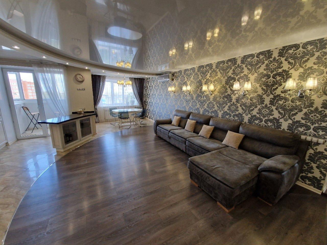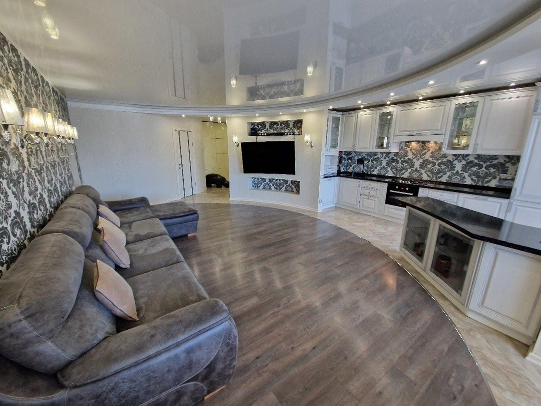 Общая площадь - 105,2 кв.м.Жилая - 41,6 кв.м.Кухня - 44,6 кв.м.В квартире качественный евроремонтОкна пластиковыеНа полу ламинат и керамогранитПотолки натяжныеСанузел совмещенный, облицован кафелем Застекленная лоджияПросторные светлые комнатыЖелезная входная дверь!