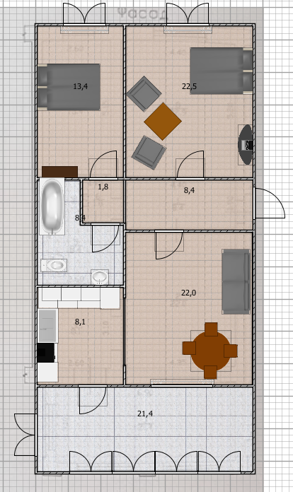 Дом улучшенной планировки, большие изолированные комнаты от 18 кв.м., застеклённая лоджия - 22,4 кв.м., высота потолков - 3,20 м., общая площадь – 106,4 м2.