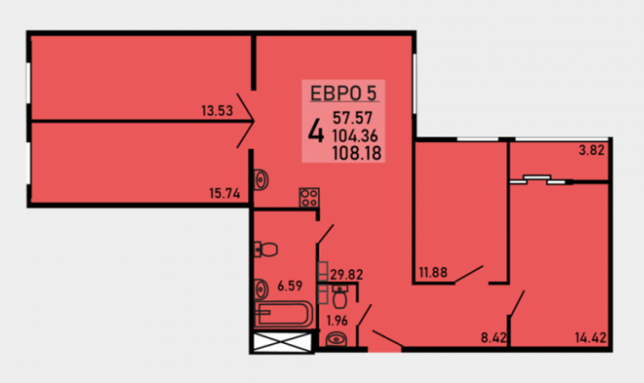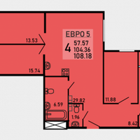 Площадь квартиры – 108.18 кв.м.