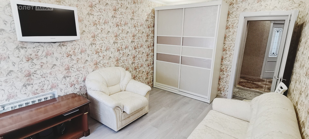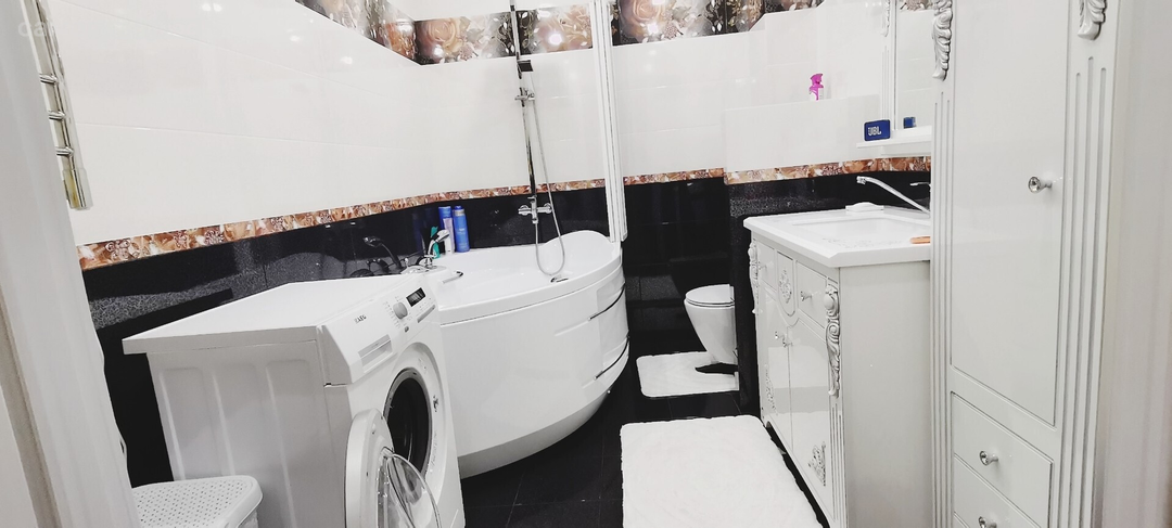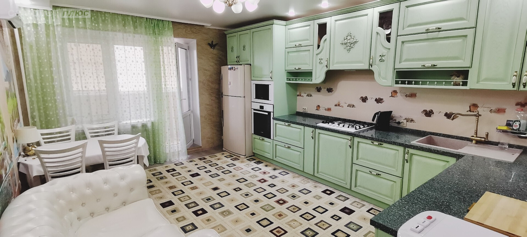 - имеется вся современная мебель для удовольствия от проживания в этой квартире: встроенная кухня со всей необходимой бытовой техникой, кухонный гарнитур, холодильник, стол и угловой диван