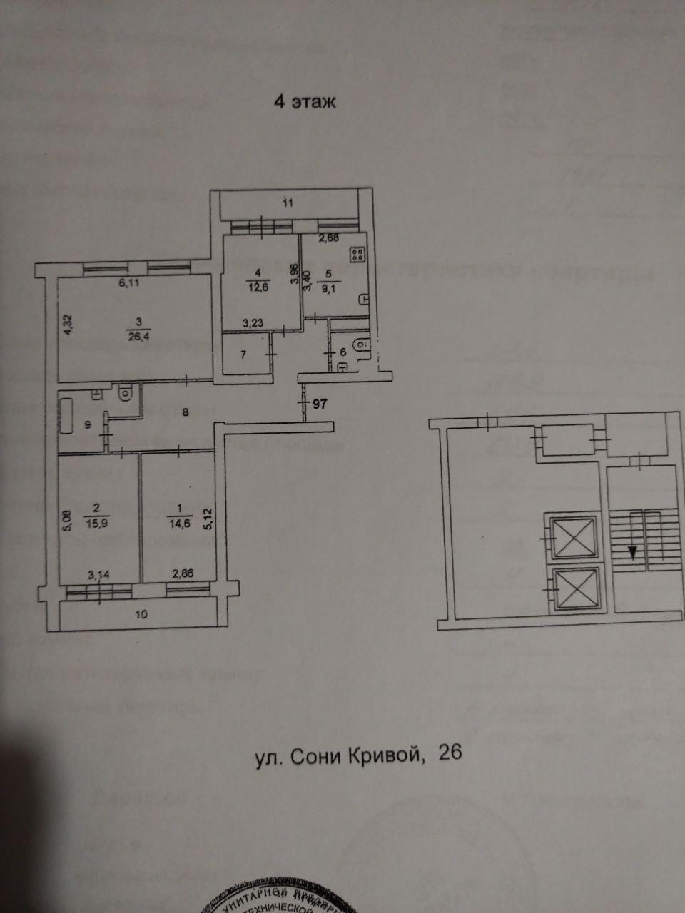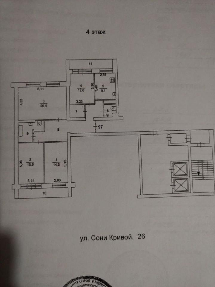 Просторная 4-комнатная квартира общей площадью 109,9 кв.м.