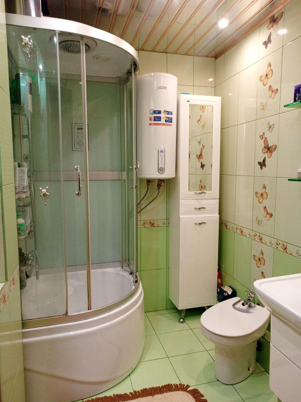 Кухня-гостиная, санузел - напольное покрытие кафель.