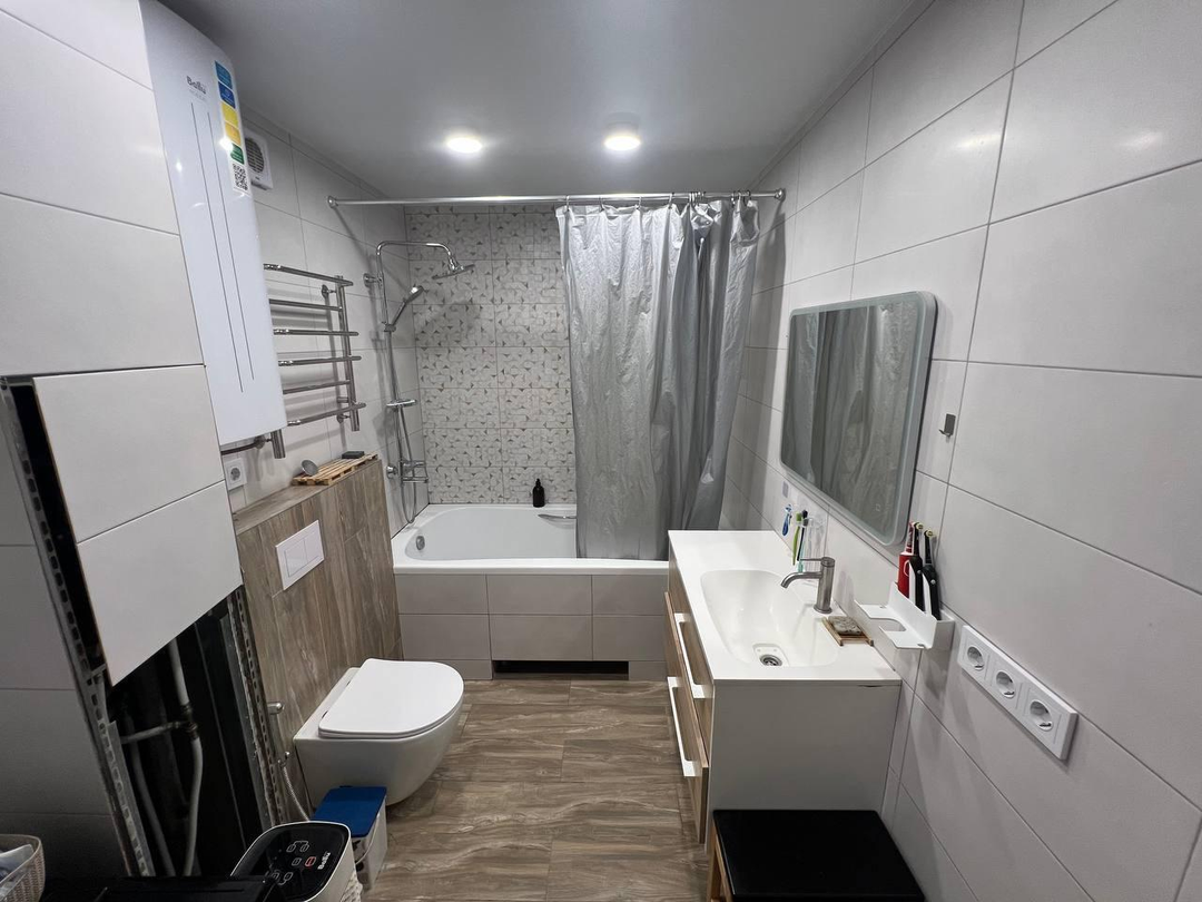 Приятный бонус при покупке: встроенная техника (посудомоечная машина, духовой шкаф, электрическая плита, шкаф, водонагреватель) останется новым владельцам. Мебель — по договоренности.