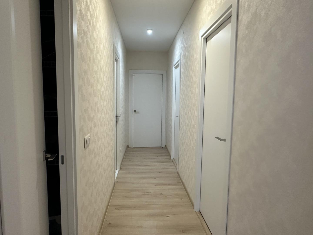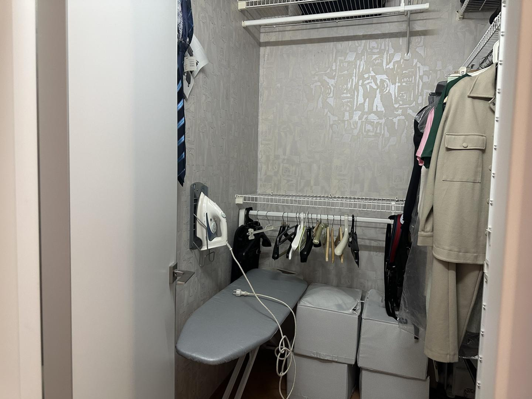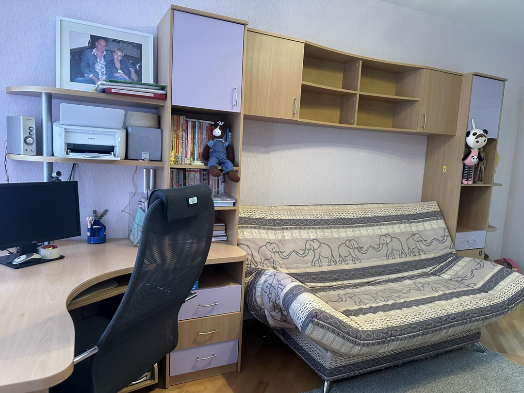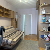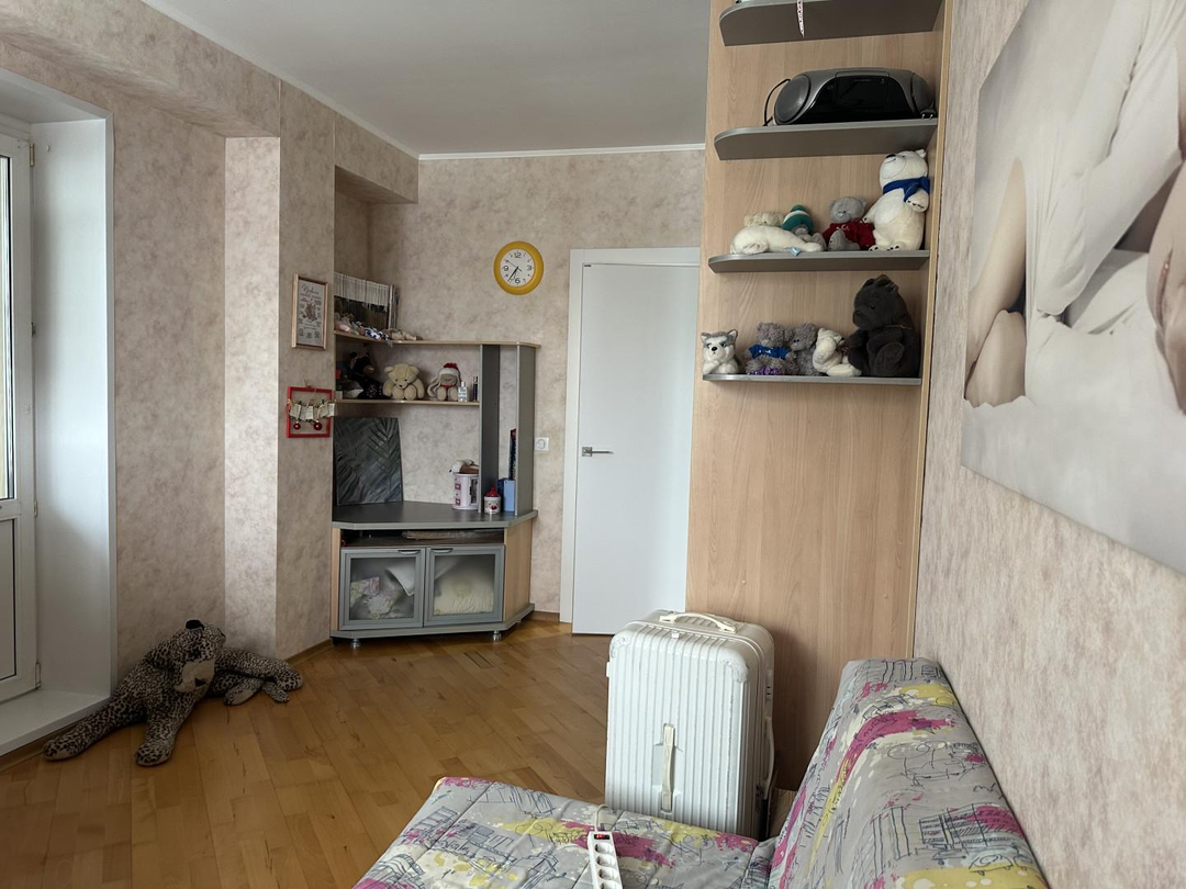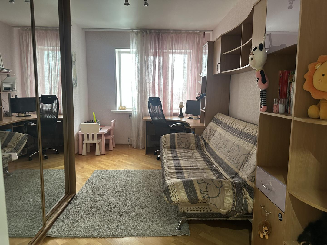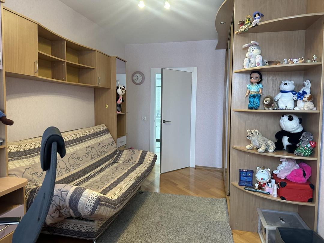 Три отдельные спальни обеспечивают каждому жильцу личное пространство. Родительская спальня оснащена большой двуспальной кроватью и располагается в удалённой части квартиры, обеспечивая максимальный покой. Две детские комнаты оборудованы полноценными рабочими местами, зоной хранения вещей и удобной мебелью для сна.