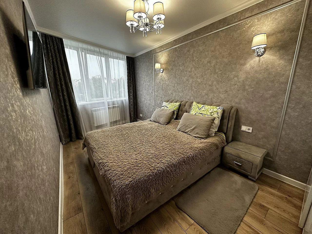 Спальня оборудована спальным гарнитуром Оrmаtес украшенным кристалами Swаrоvski.