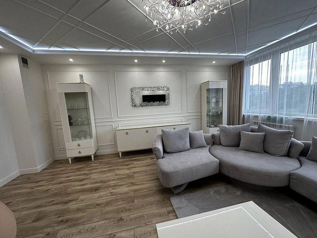 Квартира выполнена с дизайнерским ремонтом в стиле Нео-классика, использовались только премиальные материалы, т.к. делали ремонт для себя. В квартире установлена мульти сплит система с распределительным блоком для каждого помещения. На кухне и в сан узлах теплый пол и конверторный радиатор. Все батареи, трубы и окна Rеhаu. Во всех комнатах сделана шумо-изоляция потолка.
