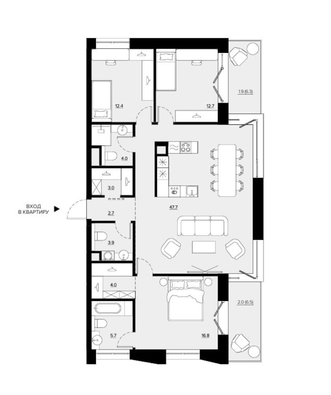 Планировка и пространство квартирыкухня-гостиная с возможностью зонирования три изолированные комнаты мастер спальня3 санузла и 2 гардеробныепросторный холл 2 балкона