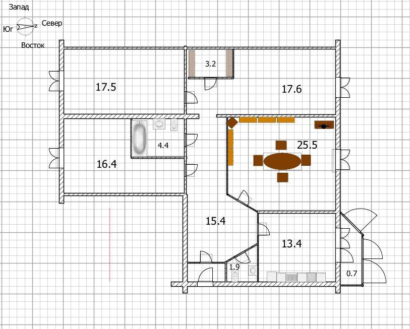 - Гардеробная - 3.2 кв. м.;