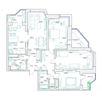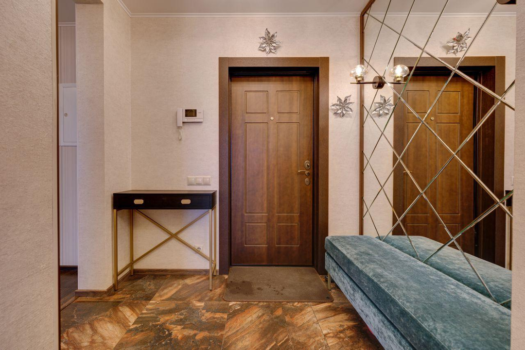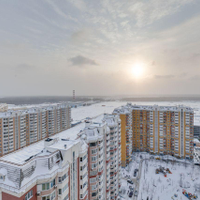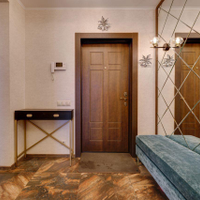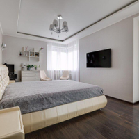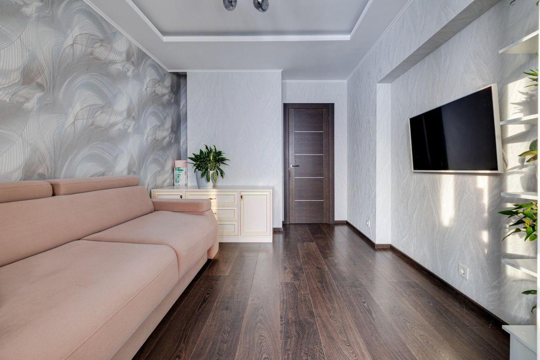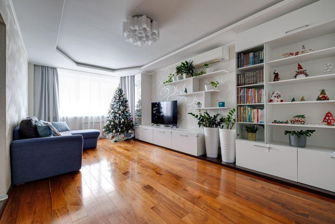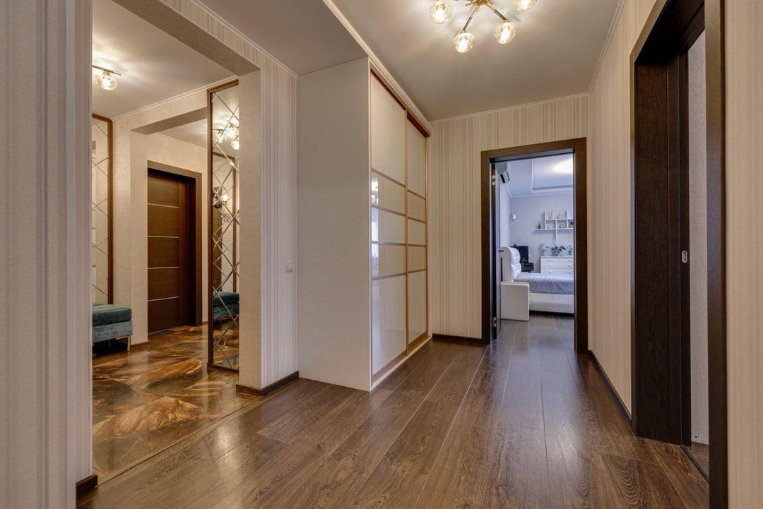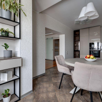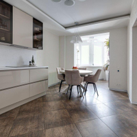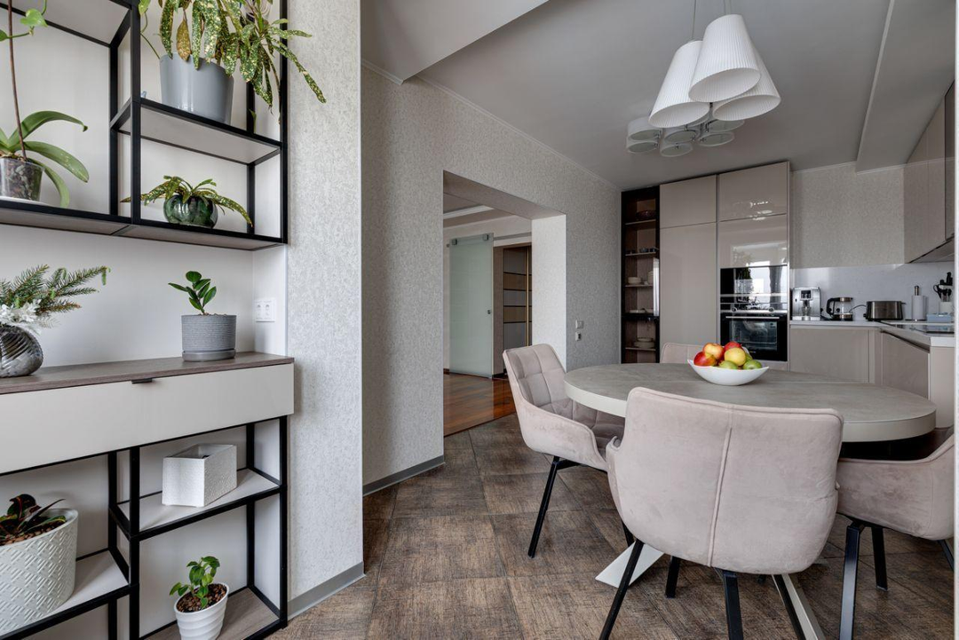 отдыха. В квартире есть всё необходимое: гостиная, кухня, три спальни и два санузла. Кухня плавно