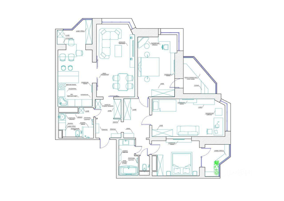 Интересное пространство, открывающее широкие возможности для жизни большой семьи.