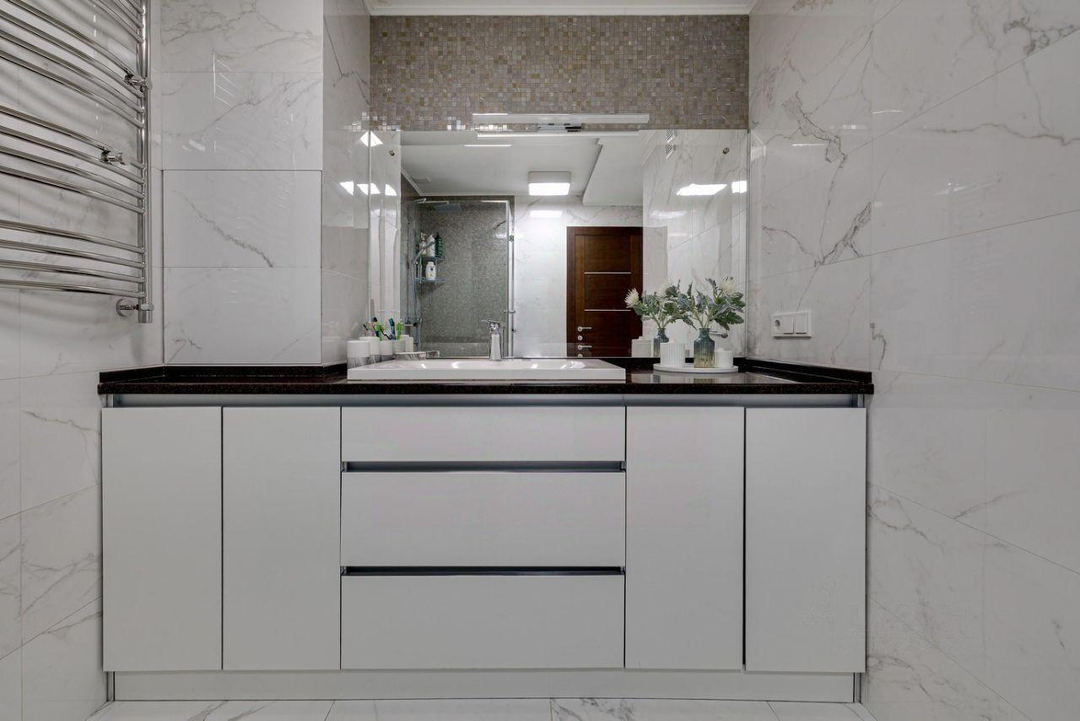 Два санузла (4,5 м² и 5 м²): вместительная душевая 1×1 м, ванная Villeroy & Boch