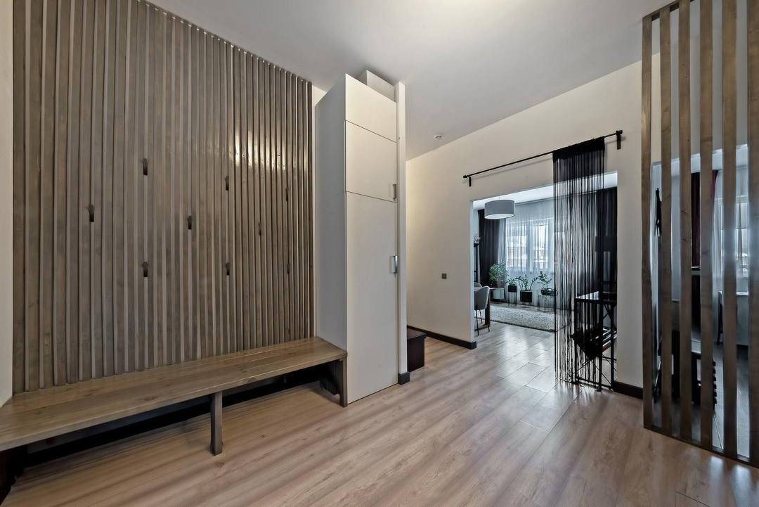 Коридор оснащен встроенной системой хранения вещей и имеет большую площадь - 17,77 кв.м.
