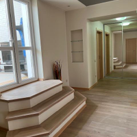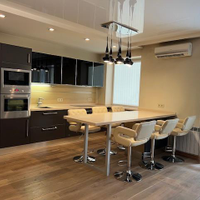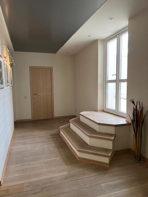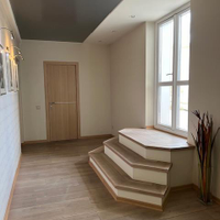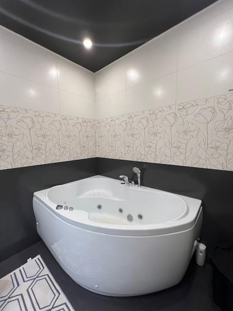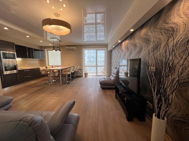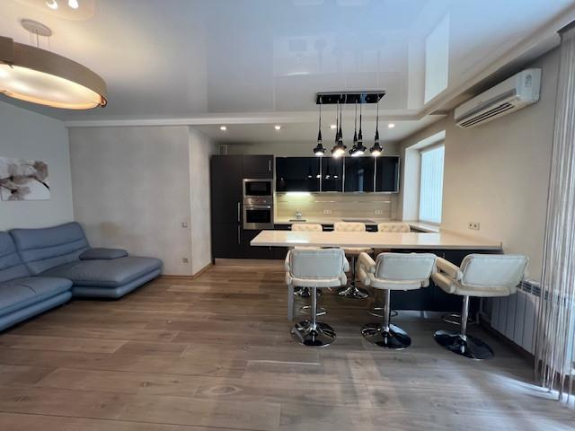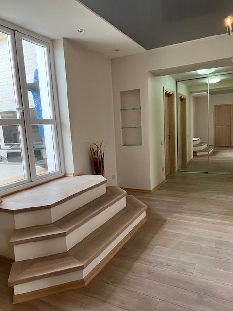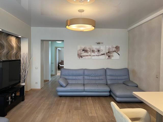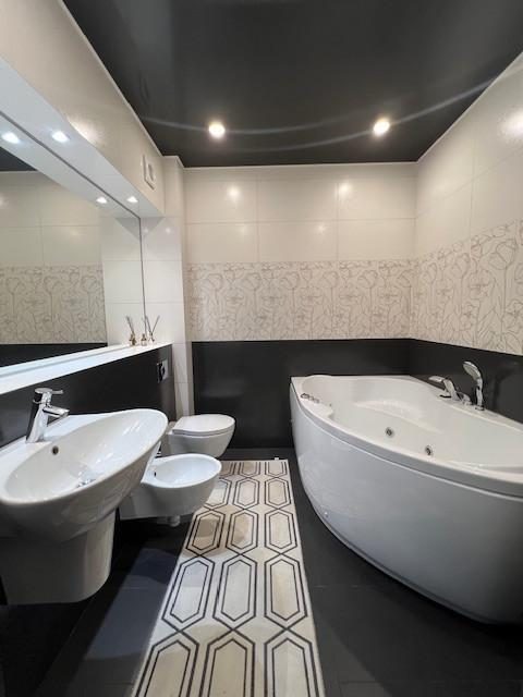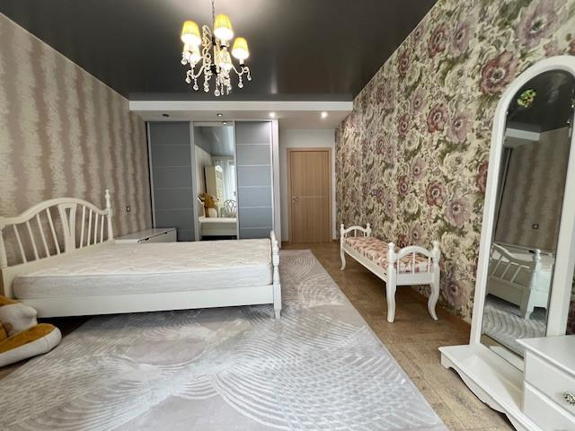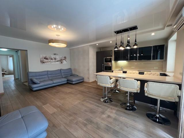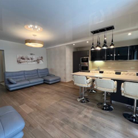 Огромная кухня-гостиная больше 30 квадратных метров и три спальни, просторный коридор, два сан.узла (в одном душевая кабина, а в другом ванна).