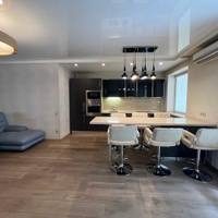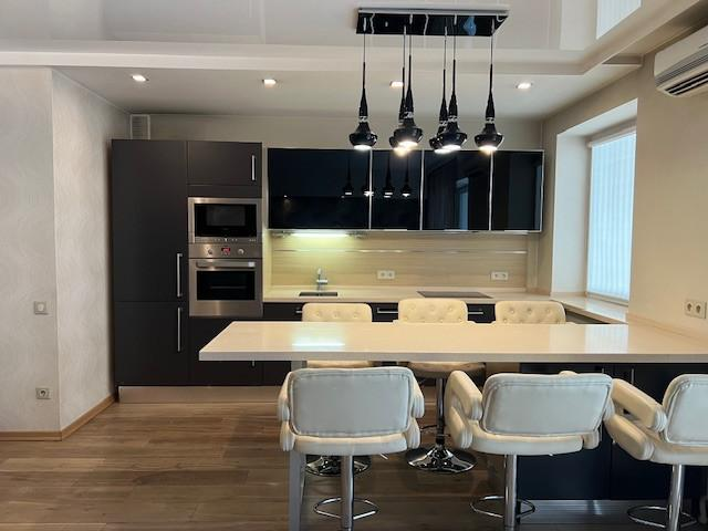Так же покупателю остается в подарок вся мебель и бытовая техника, который Вы видите на фото: в кухне-гостиной кухонный гарнитур со встроенной техникой (варочная панель, духовой шкаф, микроволновка, посудомоечная машина, вытяжка), обеденный "остров" с барными стульями, мебель и телевизор; полностью обустроенная детская комната со встроенным шкафом, кроватью, напольным зеркалом и учебной зоной; гостевая спальня со встроенным шкафом и мебелью; и т.д.