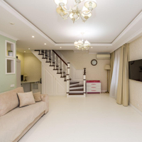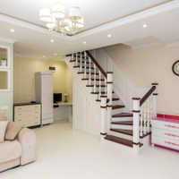 Качественный нескользкий ламинат (1 этаж) и теплая пробка (2 этаж).