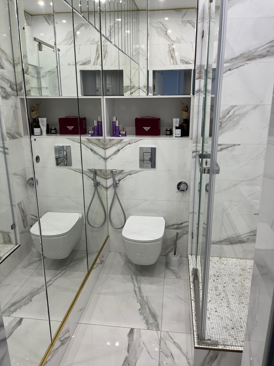 • Санитарный узел в современном кафеле