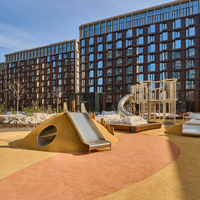 Большой озелененный двор, зоны для занятий спортом, детские площадки,площадки для медитации.Торгово-развлекательный комплекс, где откроются рестораны, супермаркеты, зоомагазины, салоны красоты, магазин цветов и бытовые услуги.