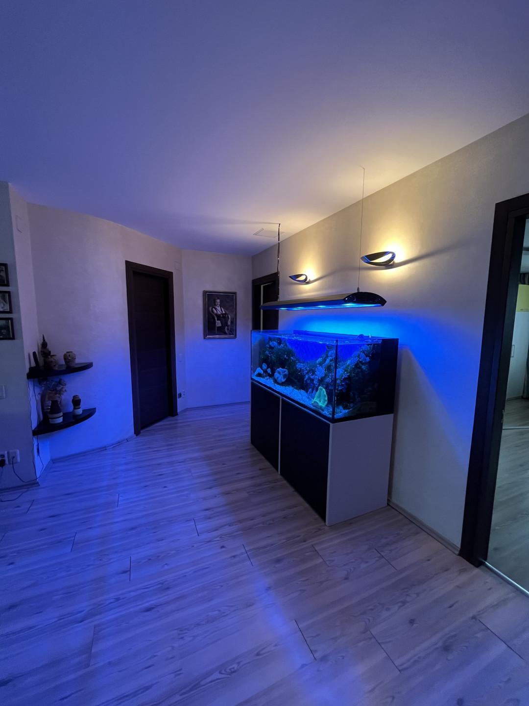 В квартире продумана каждая деталь для комфортного проживания: все комнаты изолированы, окна выходят на разные стороны, а из спальни и детской открывается живописный вид на реку. Дополнительные приятные акценты создают встроенная мебель, современная техника и огромный аквариум.