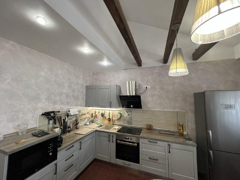 Двухуровневая квартира с панорамой города и камином.