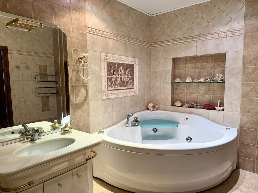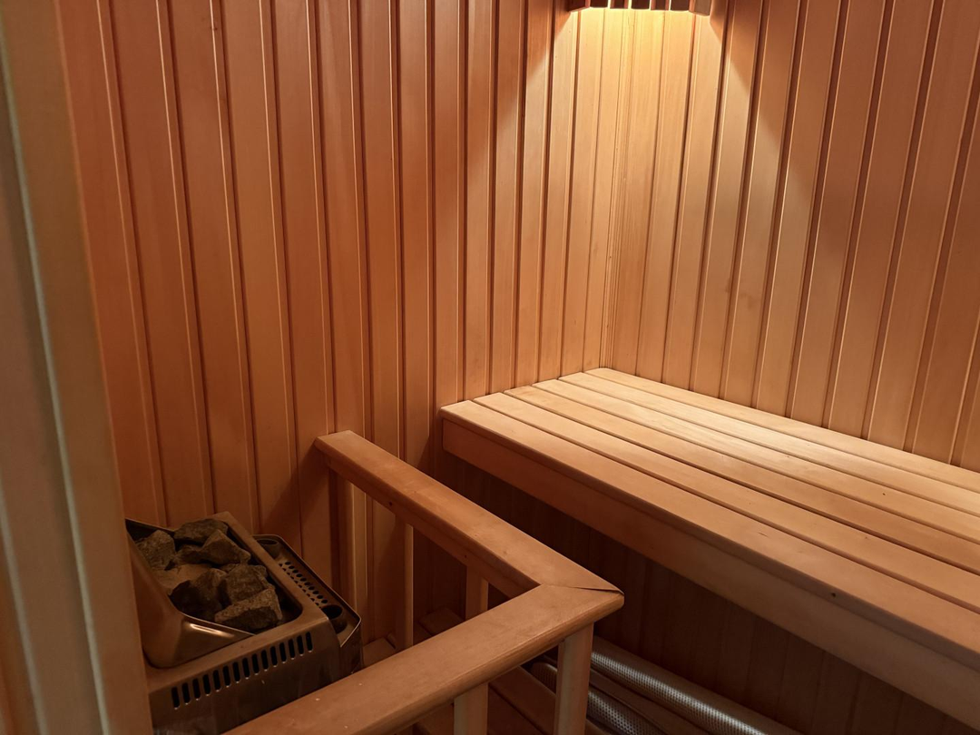 Изюминка квартиры — собственная сауна, идеальное место для отдыха и восстановления после насыщенного рабочего дня.