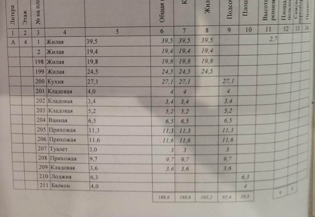 -Общая площадь квартиры 188 кв.м.