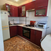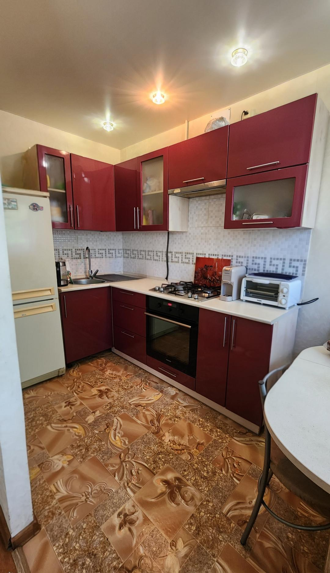 • кухонный гарнитур с газовой варочной поверхностью, духовой шкаф, вытяжка.