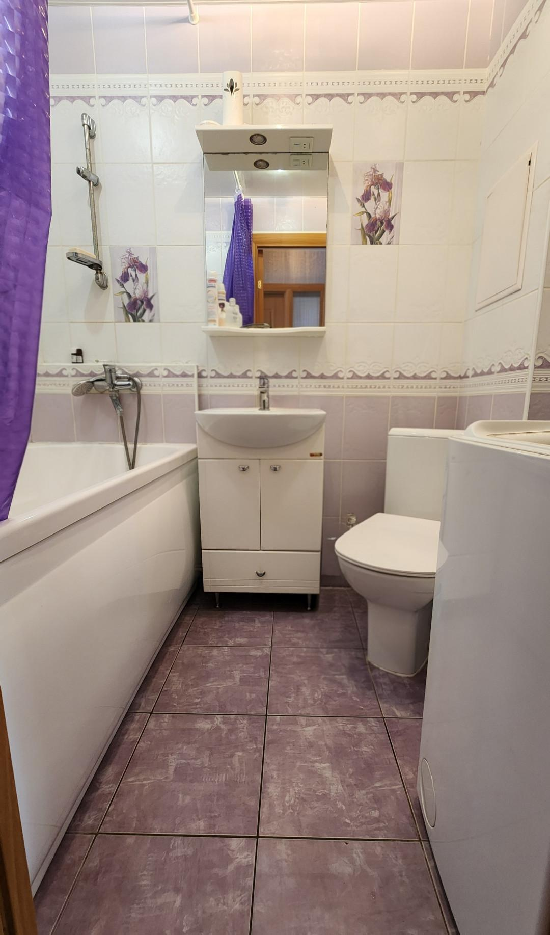 Санузел совмещен, обшит кафелем.