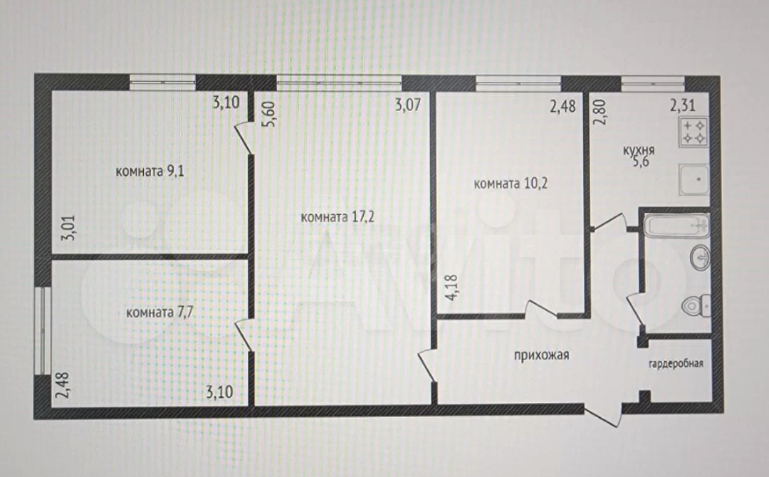 Удобная планировка: 4 отдельные комнаты, раздельный санузел, прихожая с гардеробной зоной.
