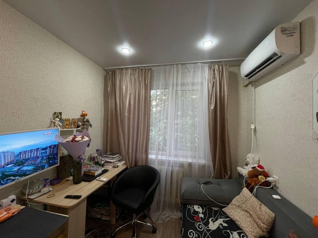 Квартира очень теплая! В одной из комнат выполнен косметический ремонт: натяжной потолок, линолеум, свежие обои, установлен кондиционер. Санузел и ванная комната так же имеют свежий ремонт  с новой плиткой и сантехникой. Кухня с кухонным гарнитуром и техникой!