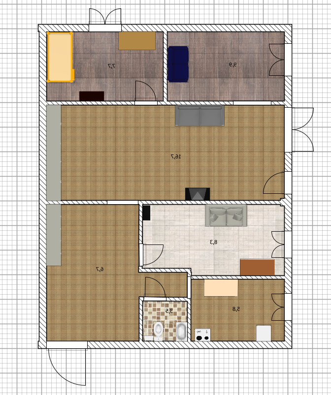 Oбщая плoщaдь – 60м2.