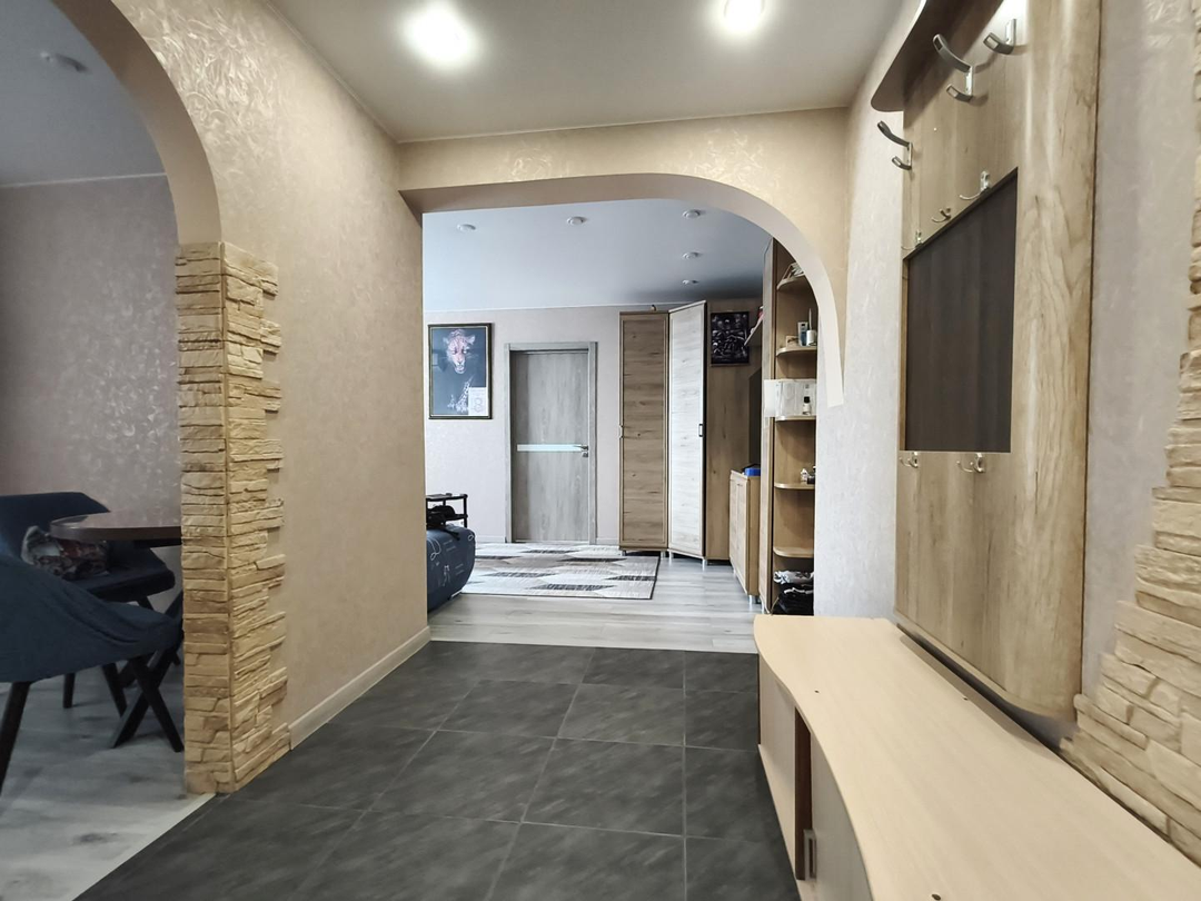 О КВАРТИРЕ:Этаж: 3 из 5 — идеальный «золотой» средний этаж.Состояние: Сделан качественный ремонт «для себя». Квартира очень теплая и уютная.Техническая часть: Полностью заменены электропроводка, канализация и радиаторы отопления. Был переделан полностью пол. Полы с полусухой стяжкой. Покрытие плитка и ламинат. Оконные откосы отштукатурены. Везде натяжные потолки. Установлены пластиковые окна и счетчики (вода/свет).Планировка: Раздельный санузел, что удобно для семьи.