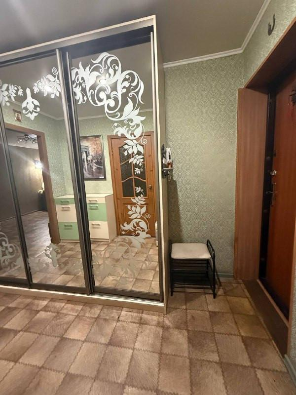 -В квартире сделан дизайнерский ремонт, стены поклеены обоями, пластиковые окна, на полу линолеум, установлена новая входная дверь.