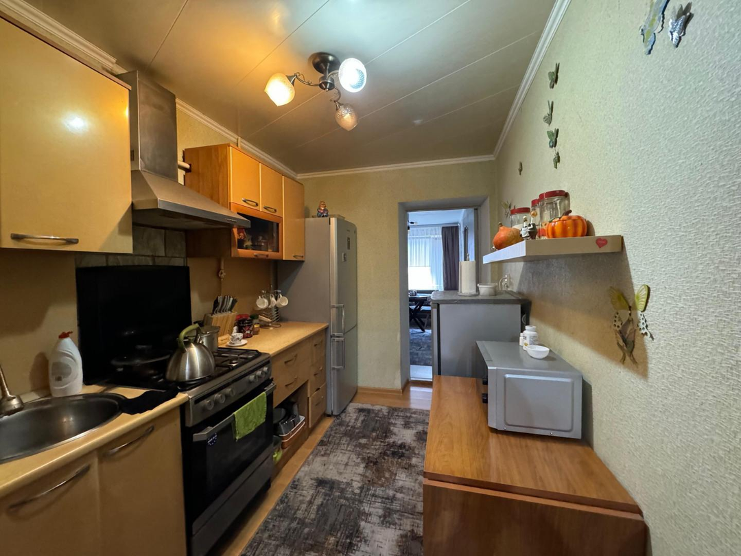 Квартира светлая, с хорошей планировкой и косметическим ремонтом. Три изолированных комнаты с кухней и комнатой-столовой, раздельным санузлом и коридором. Также в квартире имеется кладовая.