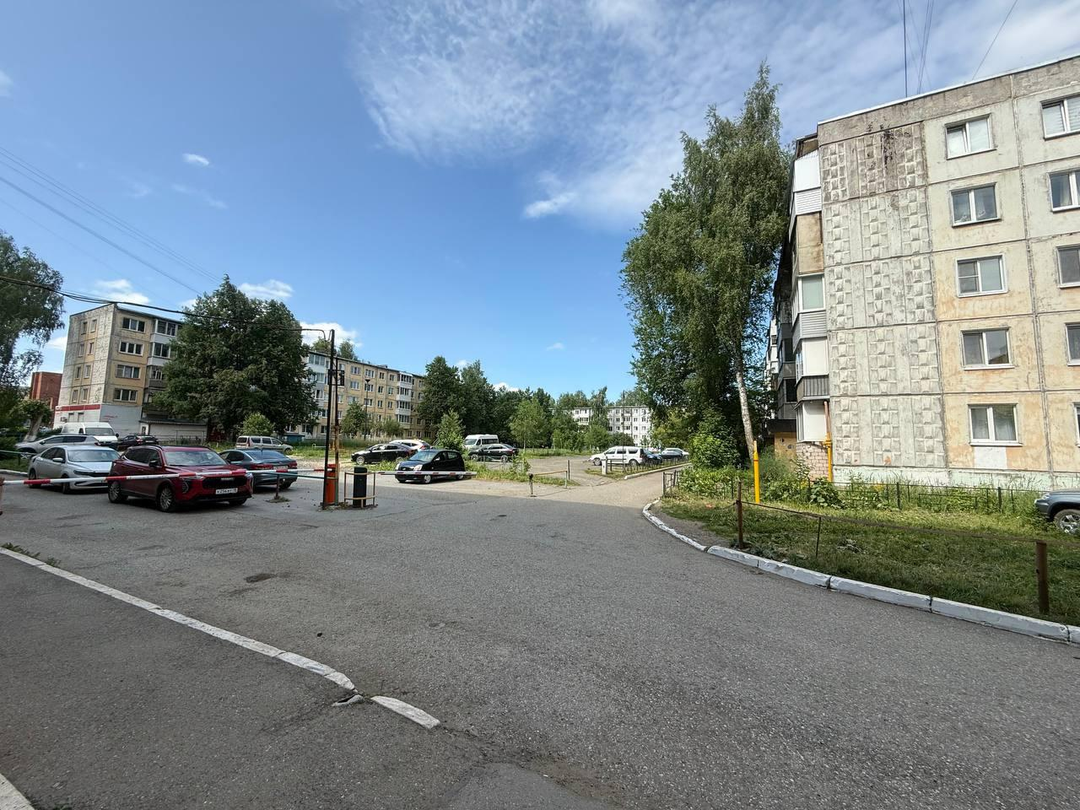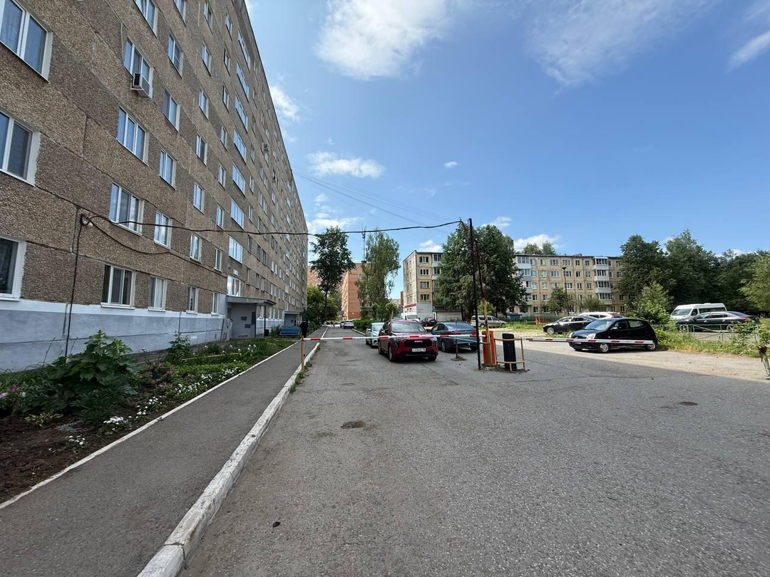 - большая парковка, въезд на территорию дома огорожен шлагбаумом,