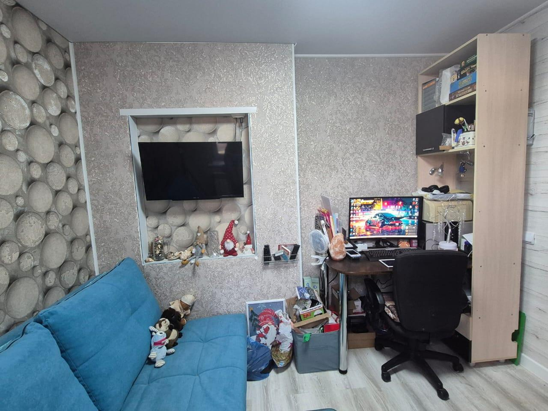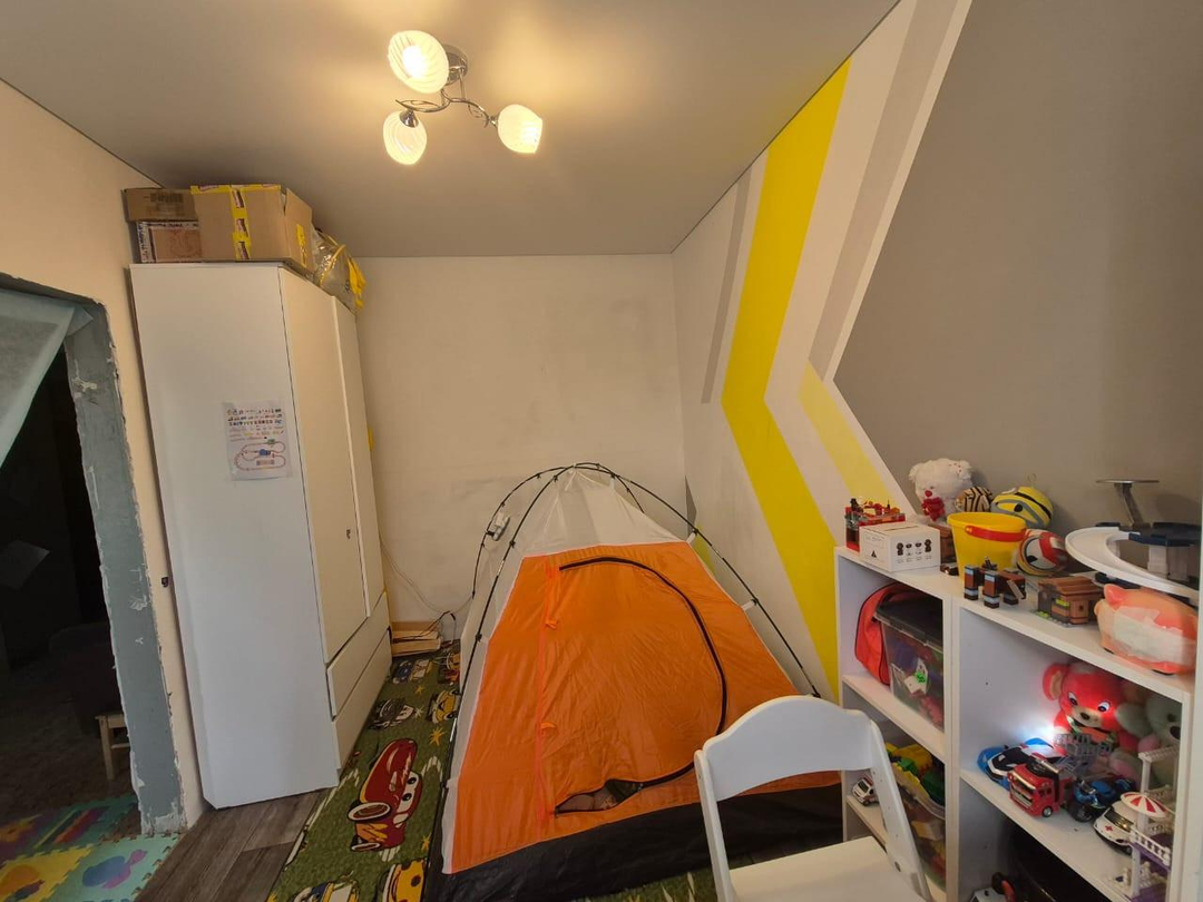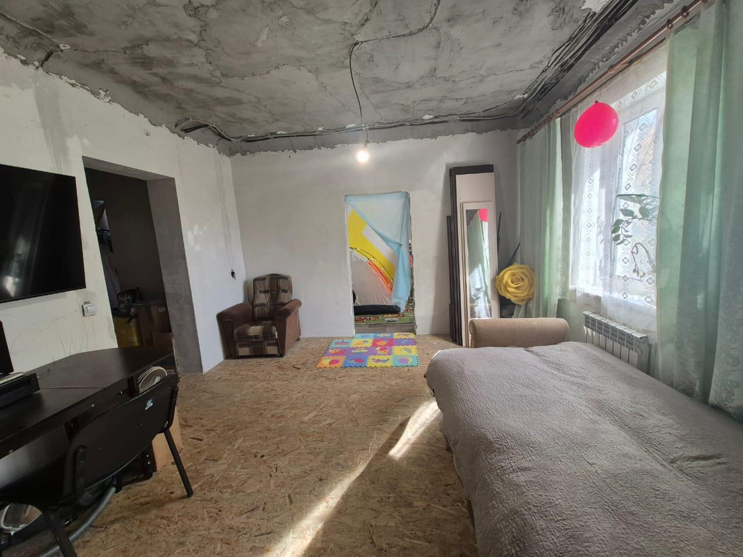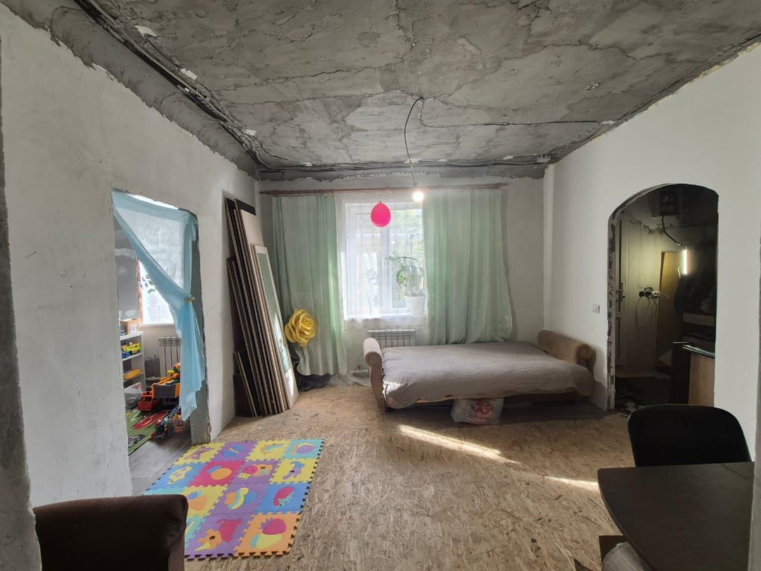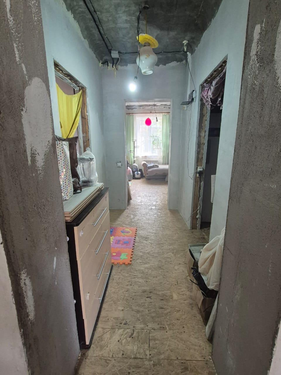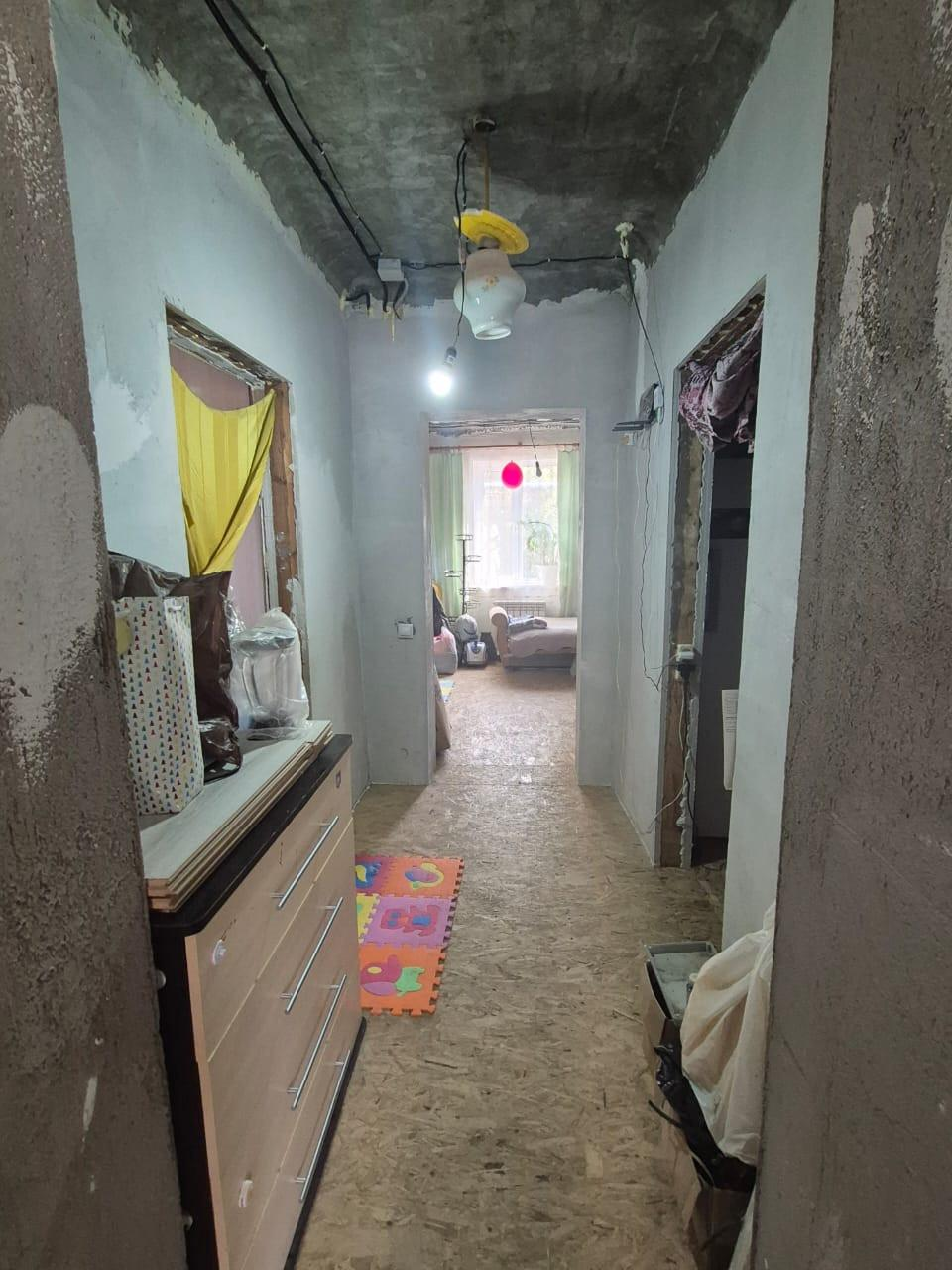 Комнаты - 3 спальни и зал. Выровнены стены, новая проводка по ГОСТу, новые полы в уровень. В двух спальнях сделаны потолки и светильники, напольные покрытия, в одной из комнат поклеены обои. Остальные комнаты в предчистовой отделке.