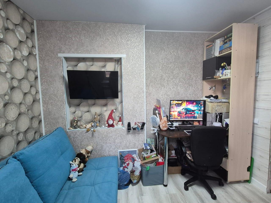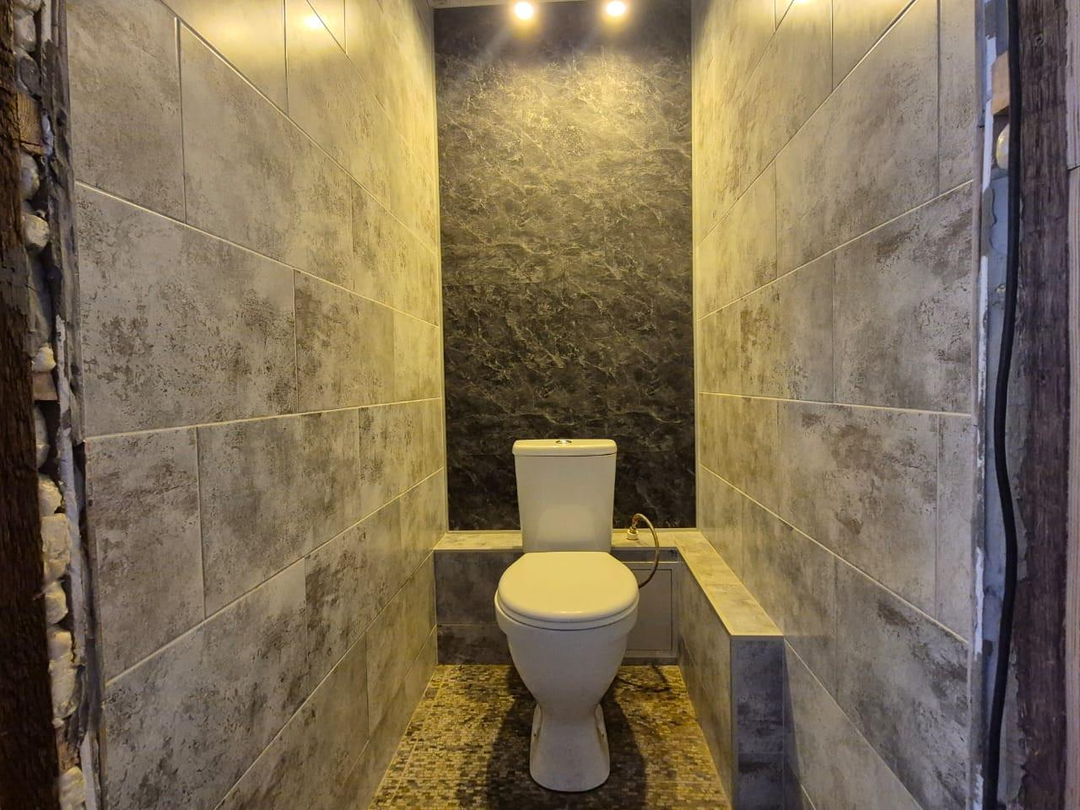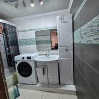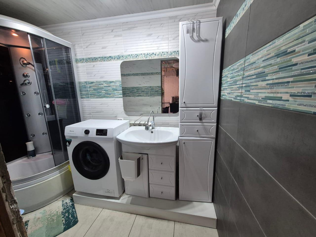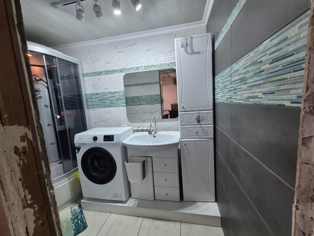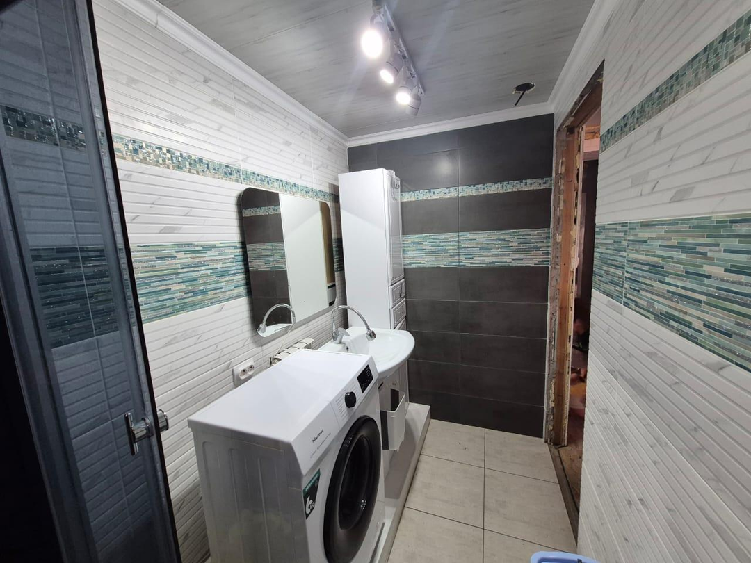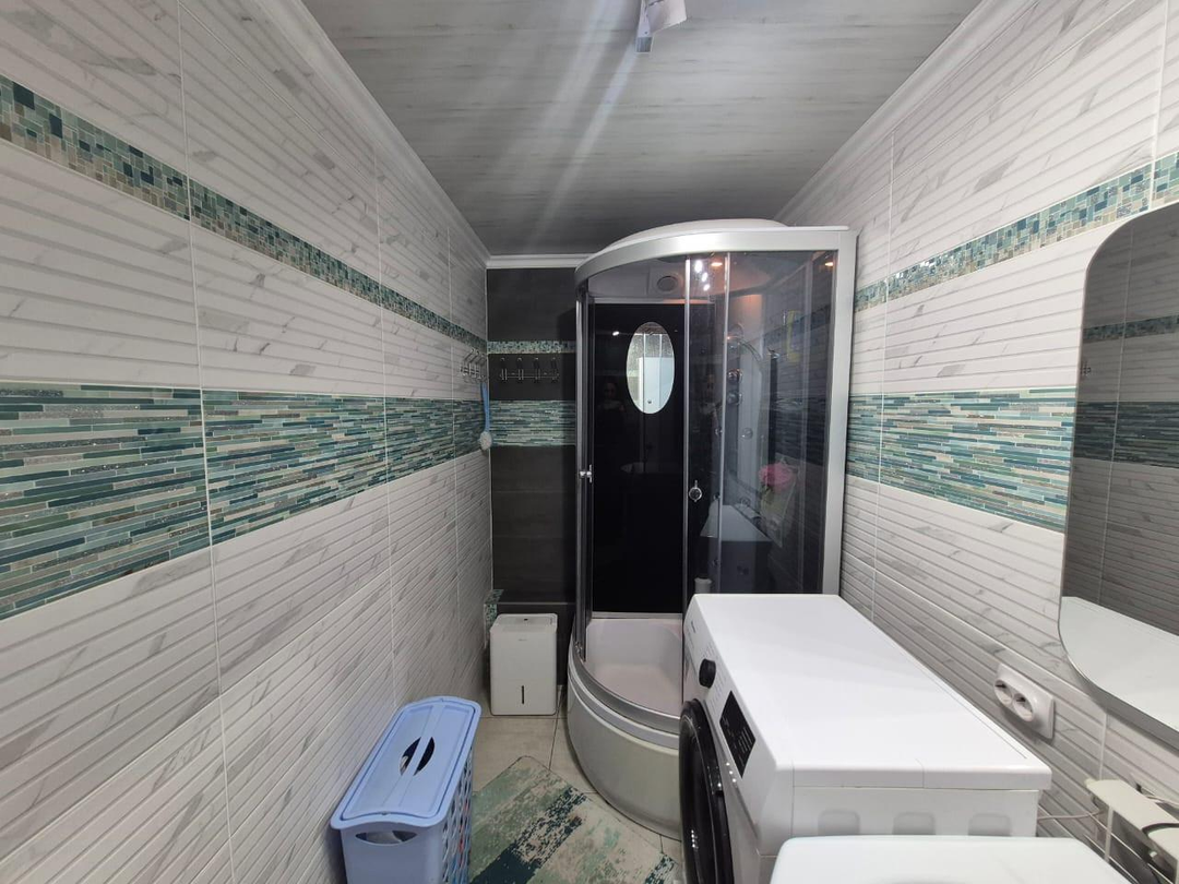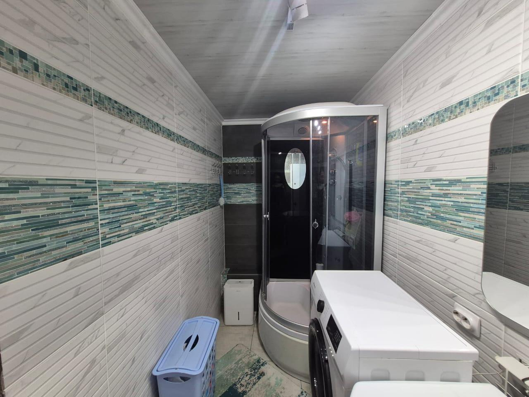 Прoводкa проводилась с нуля. Санузел раздельный - полы керамогранит, стены кафель. Современная душевая кабина, трековые светильники (настраиваемый свет). По договоренности оставят новый гарнитур.