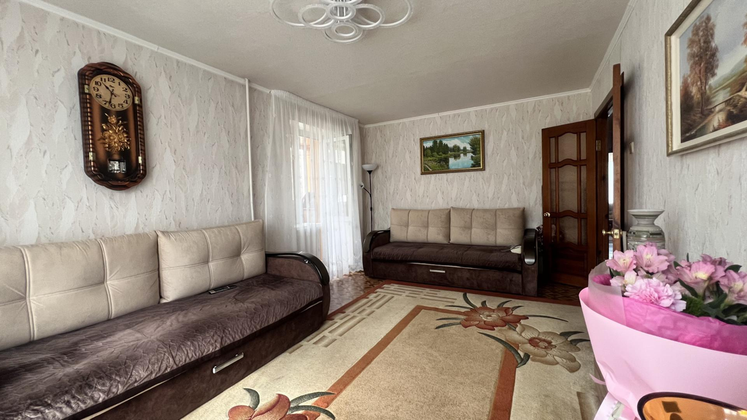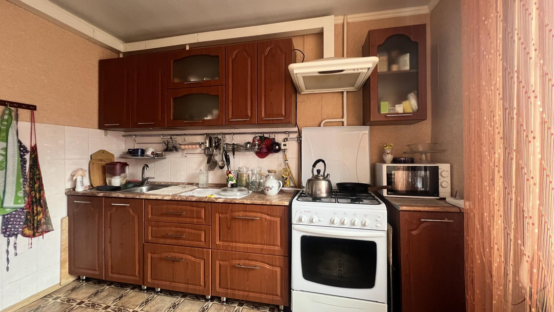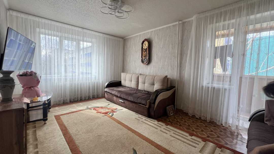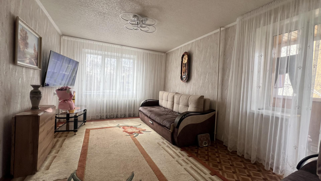 Состояние хорошее. Окна пластиковые. Сан. узел раздельный. Просторная кухня, остается кухонный гарнитур.