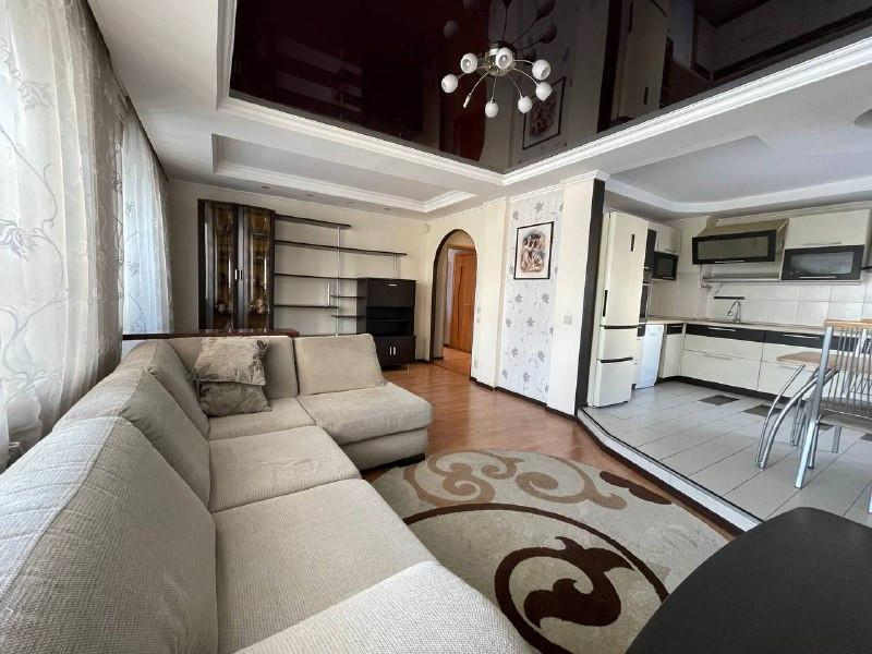Просторная кухня (студия), 3 изолированные спальни, санузел раздельный. Квартира имеет огромную шестиметровую лоджию с остеклением и утеплением.