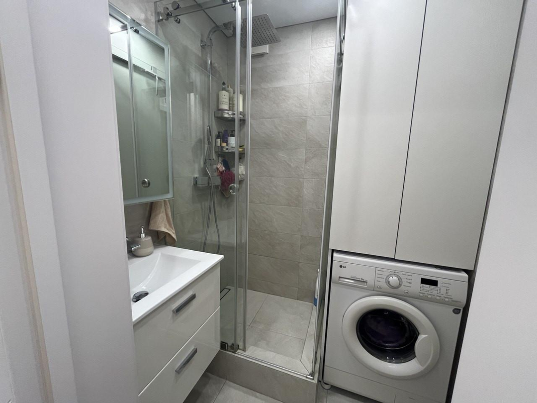 В санузле и ванной комнате также сделан качественный диайнерский ремонт. Полы с подогревом. Теплая стена в ванной для сушки полотенчиков. Установлен водонагреватель.
