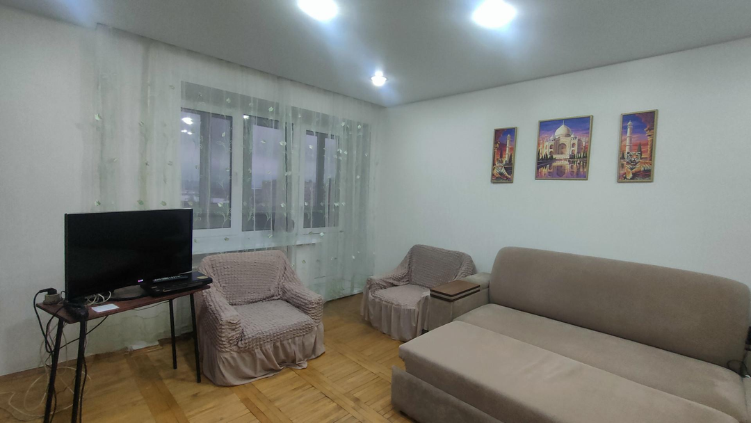 Квартира удобной планировки, все комнаты изолированные, санузел раздельный. Зал большой, выход на лоджию оттуда. Лоджия длинная, вместительная, целая веранда можно сказать.